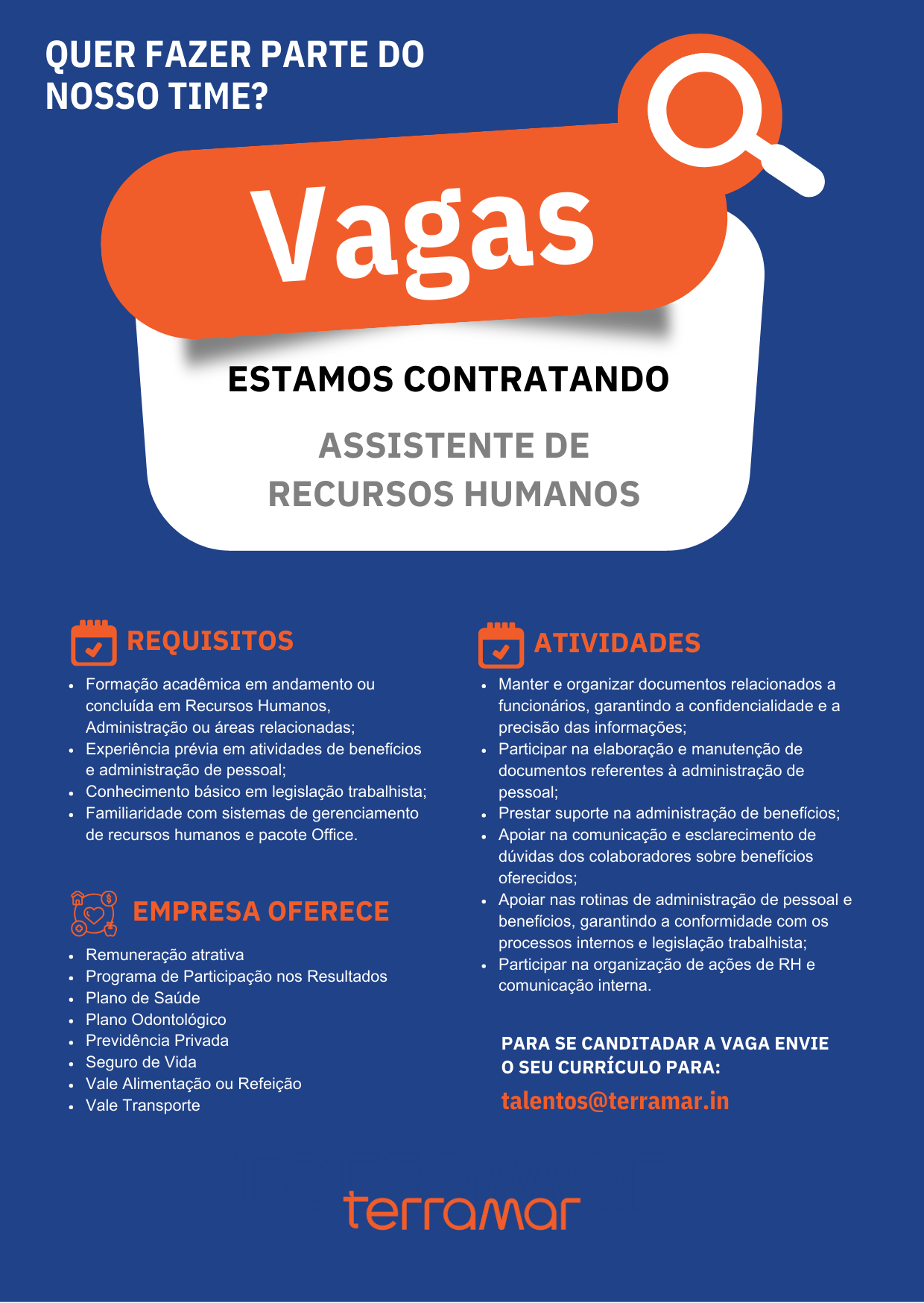 ENCAMINHE O SEU CURRÍCULO PARA: talentos@terramar.in